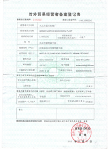 河南藍(lán)天機械制造有限公司2005年已被批準(zhǔn)為中國進(jìn)出口自主權(quán)企業(yè),歐盟CE認(rèn)證企業(yè),ISO國際質(zhì)量認(rèn)證企業(yè),德國TUV安全認(rèn)證,法國國際檢測局BV質(zhì)量認(rèn)證等,2006-2008年被評為鄭州市誠信民營企業(yè),鄭州市專利示范企業(yè),2013-2015年被評為市、鎮(zhèn)出口創(chuàng)匯先進(jìn)企業(yè),十佳經(jīng)營者企業(yè)。目前已獲得國家專利十一項,實用新型專利八項,外觀專利三項。主打產(chǎn)品暢銷國內(nèi),并出口至中東、亞洲、非洲、北美洲、南美洲、大洋洲的幾十個國家和地區(qū)。