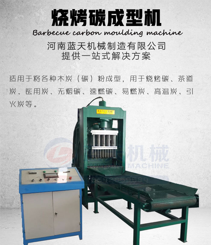 河南藍(lán)天機(jī)械制造有限公司設(shè)計(jì)的燒烤碳成型機(jī),采用上下液壓,上壓120T,下頂120T,因?yàn)閴毫Φ淖饔,做出?lái)的燒烤碳密度大,無(wú)煙、易燃,所以也被稱(chēng)為液壓燒烤碳成型機(jī),無(wú)煙燒烤碳成型機(jī),形狀外觀(guān)可以根據(jù)用戶(hù)的要求定做。藍(lán)天機(jī)械生產(chǎn)的燒烤碳成型機(jī)主要是針對(duì)碳的特性,將碳粉壓成型。目前新設(shè)計(jì)的液壓燒烤碳成型機(jī),采用了上下同時(shí)施壓,上壓120T,下頂120T,做出來(lái)的燒烤碳密度非常大,滿(mǎn)足不少燒烤餐廳、烤肉店、與戶(hù)外燒烤愛(ài)好者的需求。