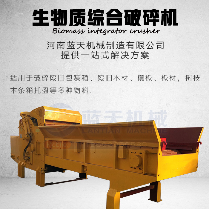 生物質(zhì)綜合破碎機是河南藍天機械制造有限公司在模板破碎機本身設備的基礎上升級而成的設備。該設備集合了模板破碎機的優(yōu)點拋棄了模板破碎機不能破碎大塊物料的缺點而研發(fā)的設備。生物質(zhì)綜合破碎機適合破碎廢舊包裝箱,模板,板材,樹枝,木條箱,托盤等多種物料。【使用范圍】:生物質(zhì)綜合破碎機可加工帶釘子木材、木托盤、工地廢舊模板、木托架、廢舊家具、樹墩、樹樁、木頭、模板廢料、房屋拆遷廢料、廢舊門窗、家具等物料,不限進料尺寸進行破碎?捎糜谏镔|(zhì)發(fā)電廠、做燃料、燒火、生產(chǎn)鋸末前置工序等專業(yè)的粗破設備。